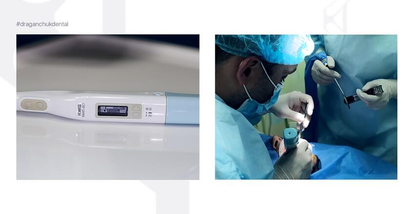 Апарат, який ми використовуємо для проведення комп’ютерного знеболення Smart Ject від компанії KMG, справжній меч джедая серед такого обладнання: