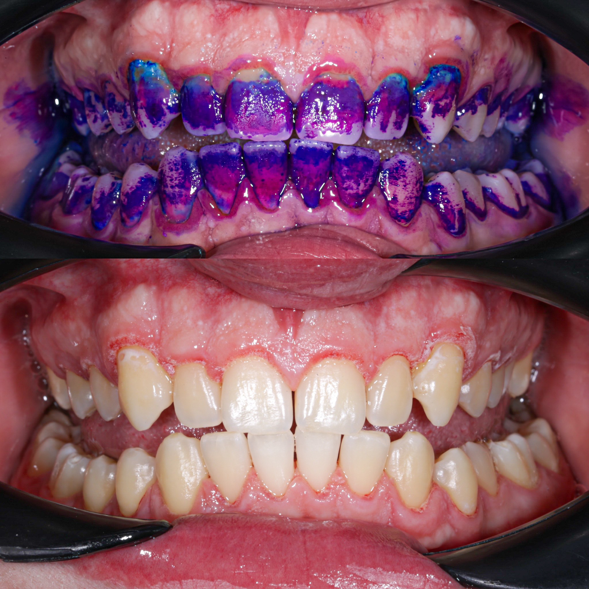 Фінальний етап професійної гігієни - полірування спеціальними щіточками та пастою, щоб усунути мікротріщини та шорохуватості, що виникли після чистки та видалити залишки нальоту, що могли в них залишитись. Це дозволяє суттєво уповільнити формування нових відкладень.