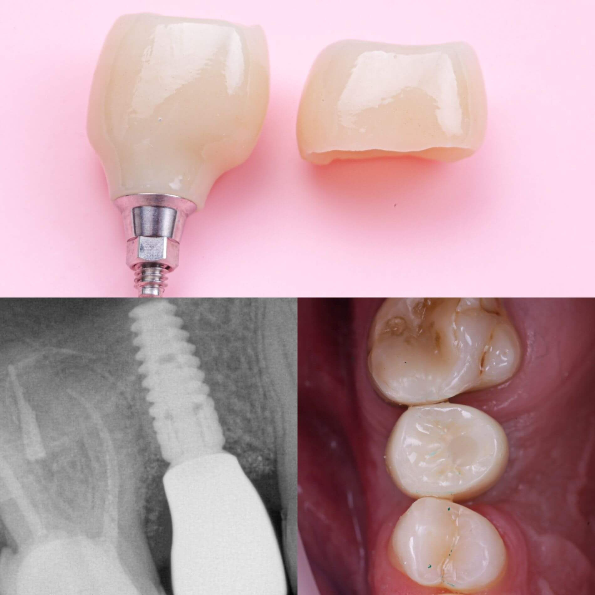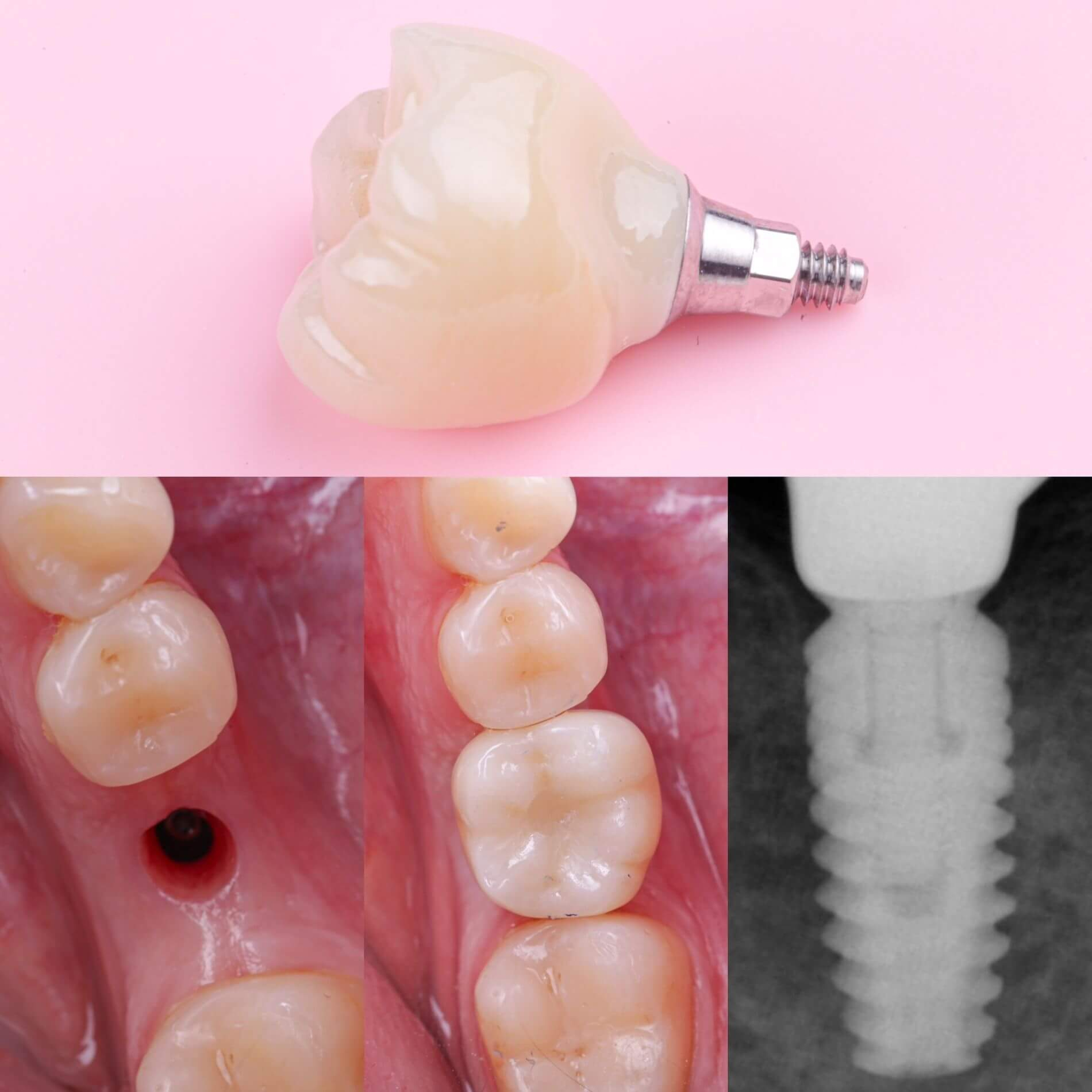 Більшість імплантів виготовляється з медичного титану. Він біосумісний, не викликає жодних реакцій та відмінно вростає в кістку щелепи.