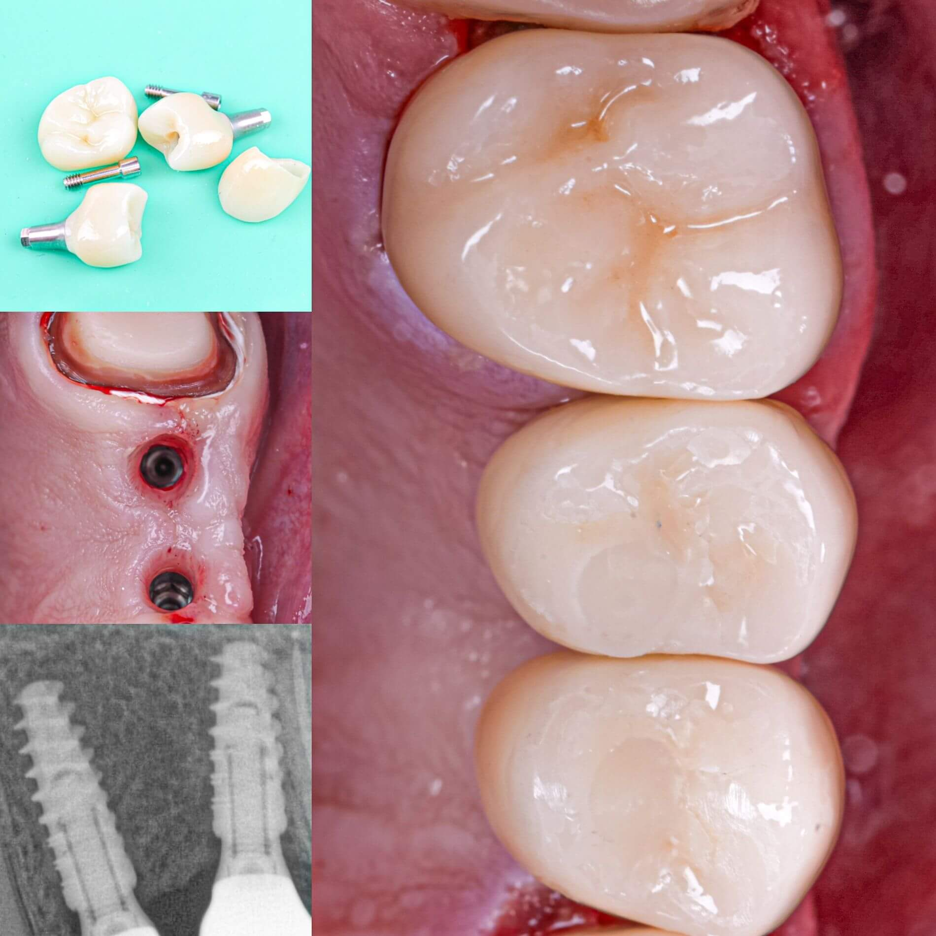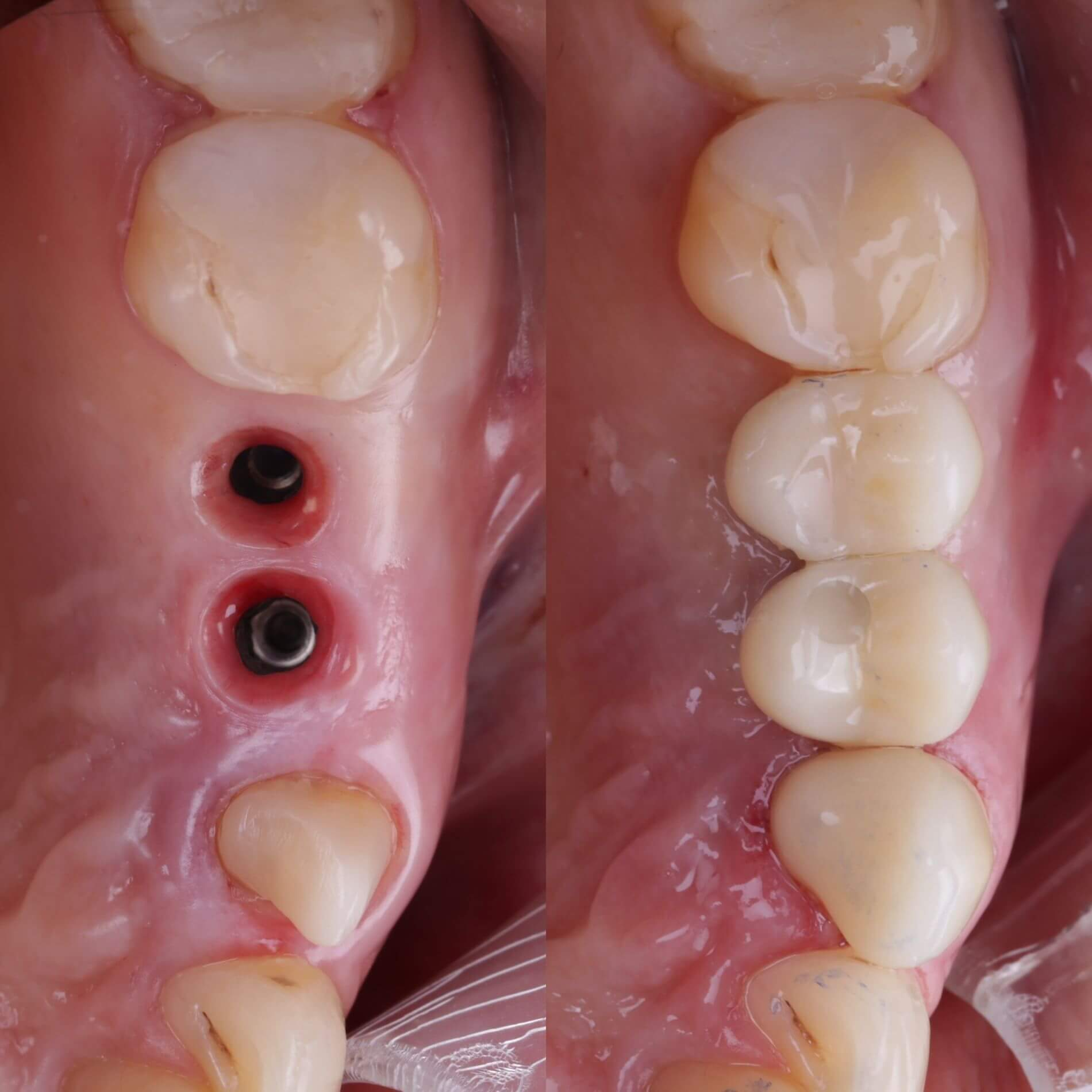 - Двоетапна імплантація відбувається в два послідовні етапи: спочатку здійснюється встановлення імпланту та витримується термін його повної остеоінтеграції (2-4 місяці, в залежності від щелепи), після чого встановлюється коронка;