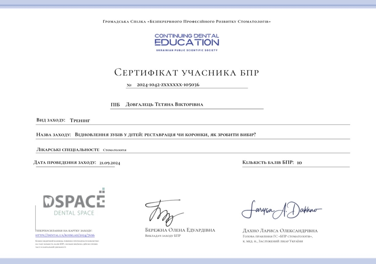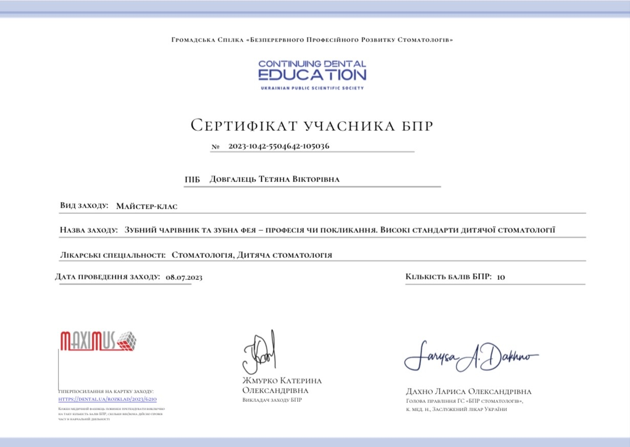 Дитячий лікар-стоматолог,для якого маленькі пацієнти та їхній комфорт стоять на першому місці.Я завжди прагну створити атмосферу довіри,де дитина почувається спокійно,захищено й сміливо.